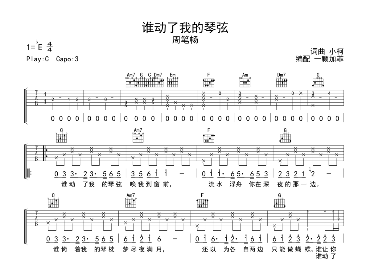 周笔畅《谁动了我的琴弦》吉他谱 - C调弹唱六线谱