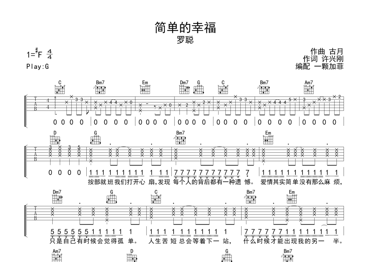 罗聪《简单的幸福》吉他谱 - G调弹唱六线谱