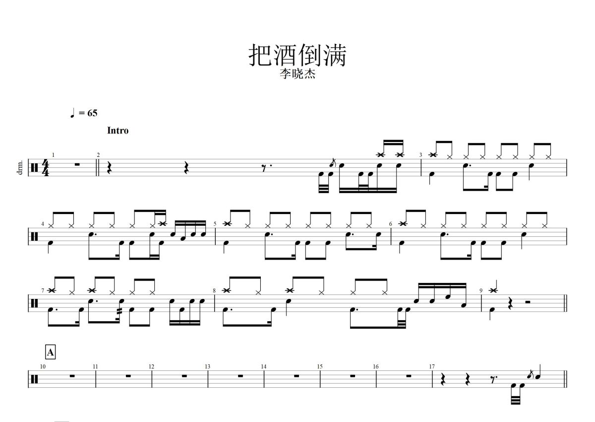 李晓杰《把酒倒满》鼓谱 - 架子鼓谱