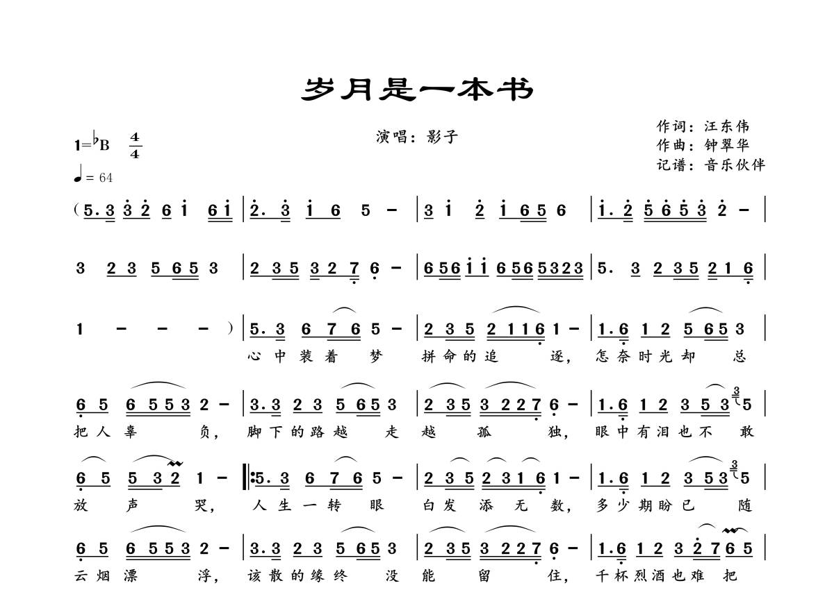 《岁月是一本书》是影子演唱的一首歌曲,这份简谱共有一张高清图谱,图谱由 @音乐伙伴 编配上传。