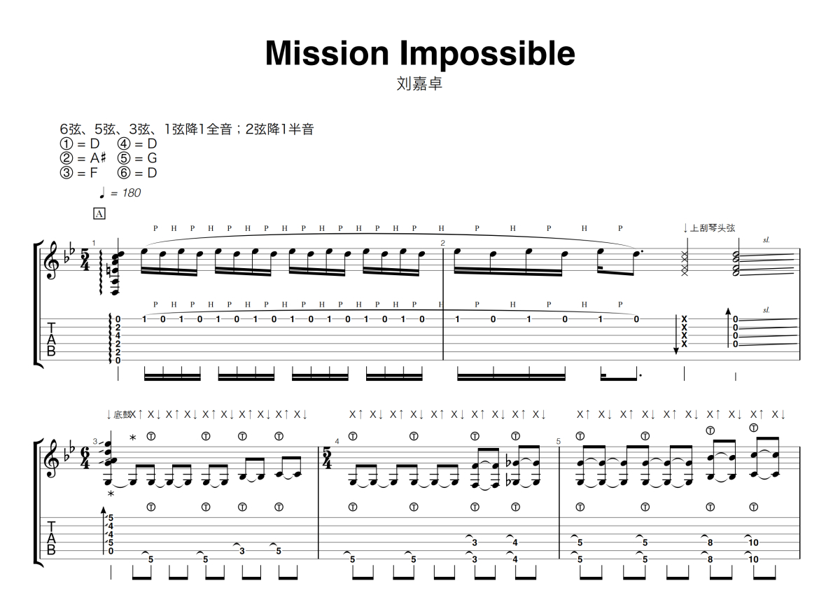 刘嘉卓《Mission Impossible》指弹吉他谱 碟中谍指弹六线谱