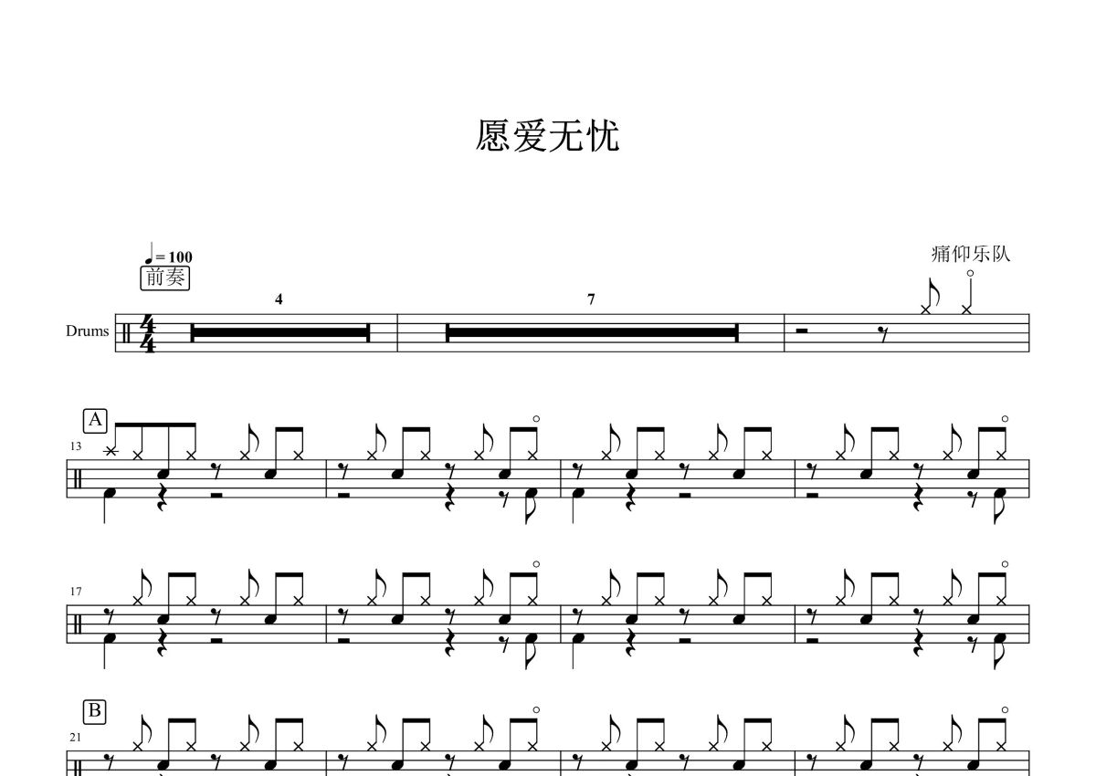 痛仰乐队《愿爱无忧》鼓谱 - 架子鼓谱