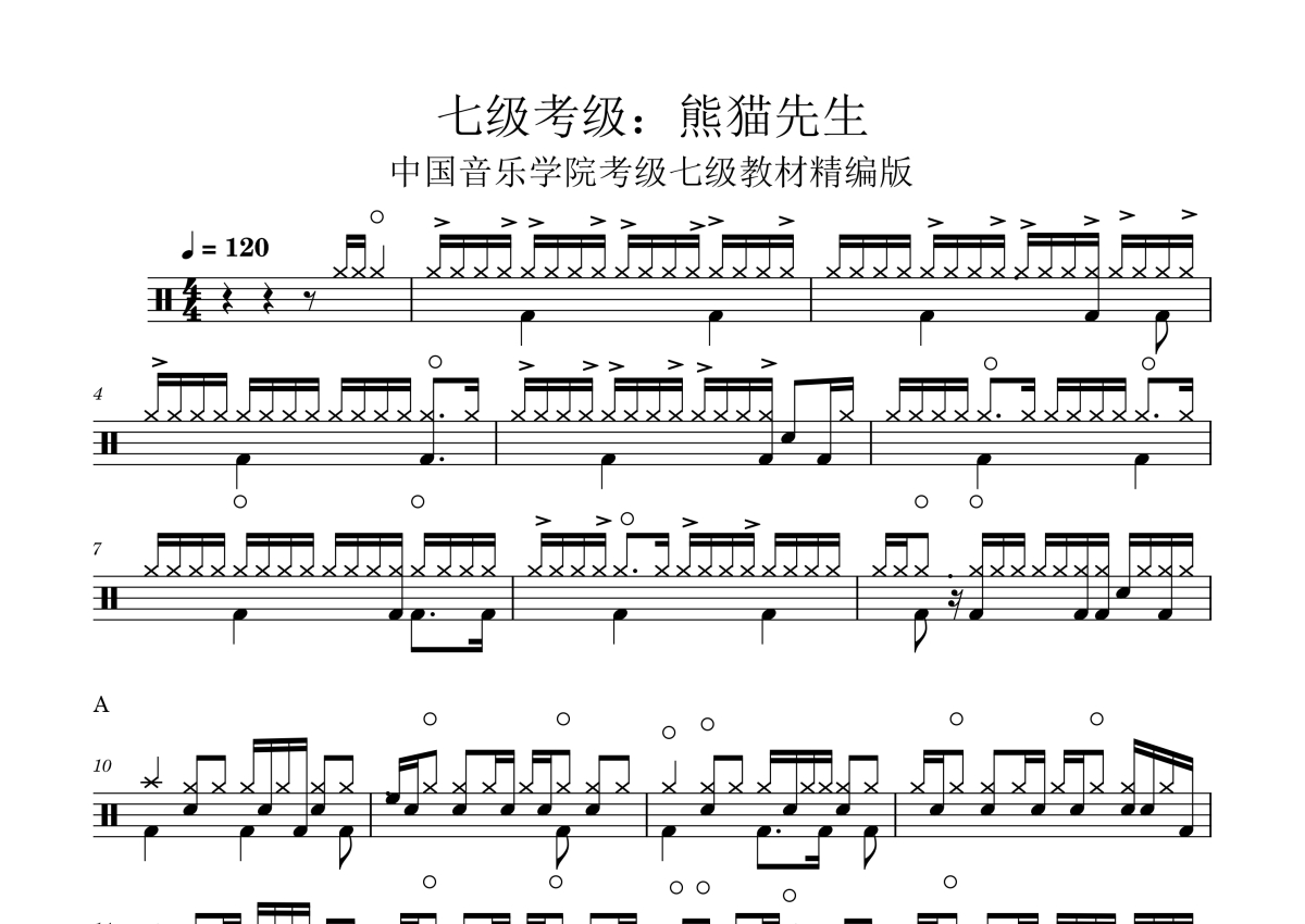 中国音乐学院考级七级《熊猫先生》架子鼓谱 - 精编版