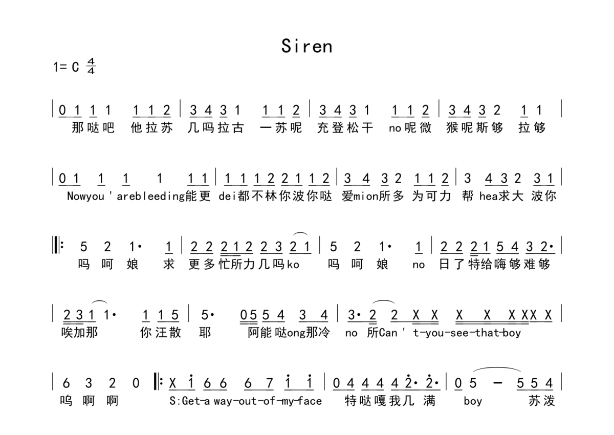 《Siren》是SUNMI(宣美)演唱的一首歌曲,拍号为4/4拍,这份简谱共有两张高清图谱,图谱由 @Golder 编配上传。