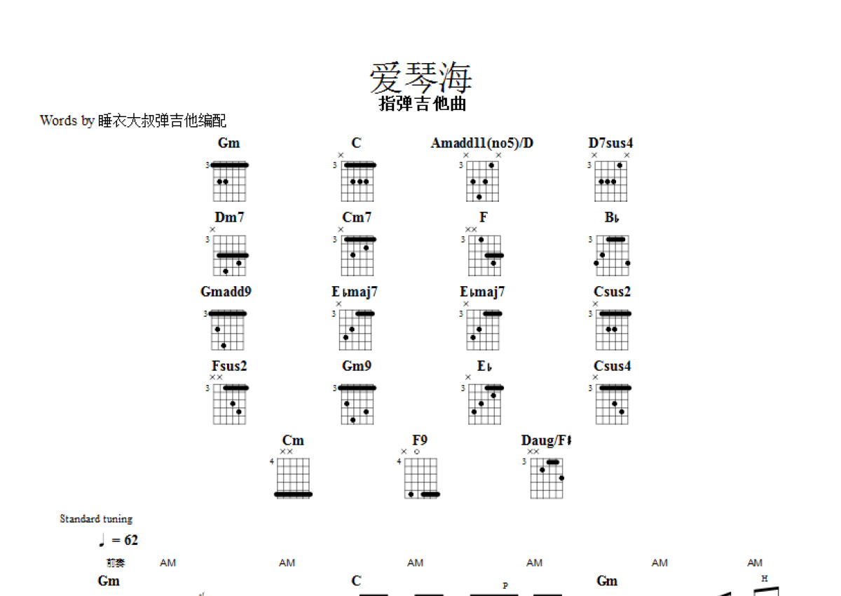 《爱琴海》是乌兰托娅演唱的一首歌曲,拍号为4/4拍,歌曲速度为每分钟62拍,歌曲原调为Bb调,变调夹3品弹奏即为原调,当然也可以根据自己的音域改变变调夹位置,或者通过改变和弦调性,以方便自己弹奏,这份吉他谱共有五张高清图谱,图谱由 @睡衣大叔弹吉他 编配上传,图谱使用六线谱编配,曲谱配备了相关的音频提供试听,使用这份爱琴海吉他谱,可以让你更加方便地掌握这首歌曲的演奏技巧,快来尝试吧。