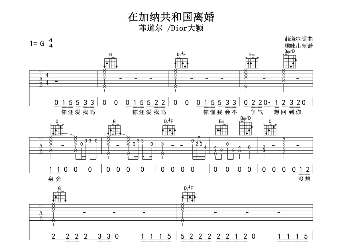 在加纳共和国离婚吉他谱 - 菲道尔/Dior大颖 - G调弹唱六线谱