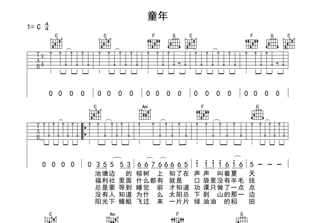 童年吉他谱 - 罗大佑 - C调弹唱六线谱