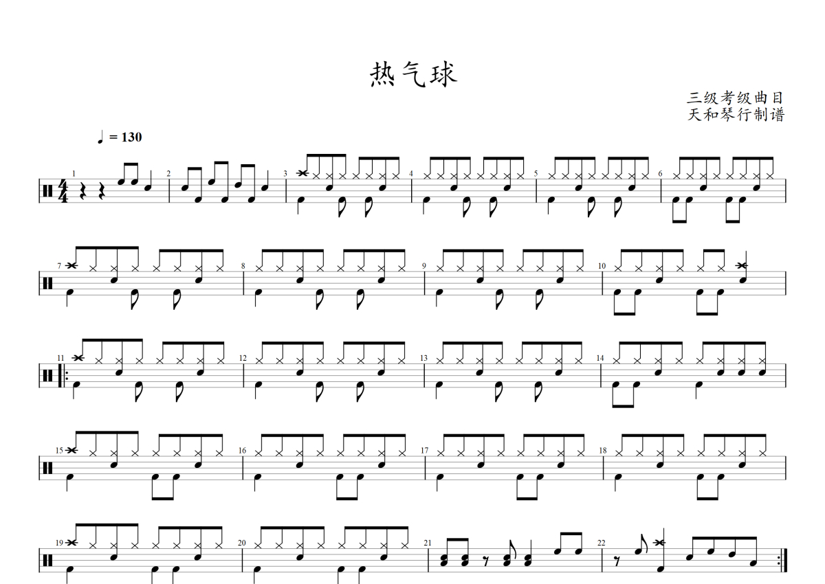 三级考级曲目《热气球》架子鼓谱