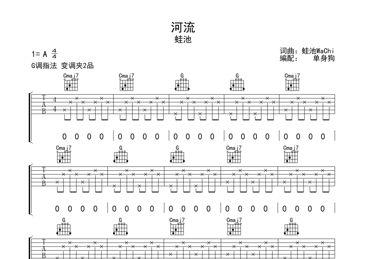 蛙池《河流》吉他谱 - G调弹唱六线谱