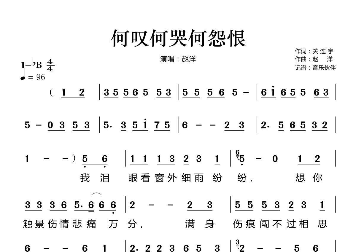 何叹何哭何怨恨简谱 - 赵洋演唱