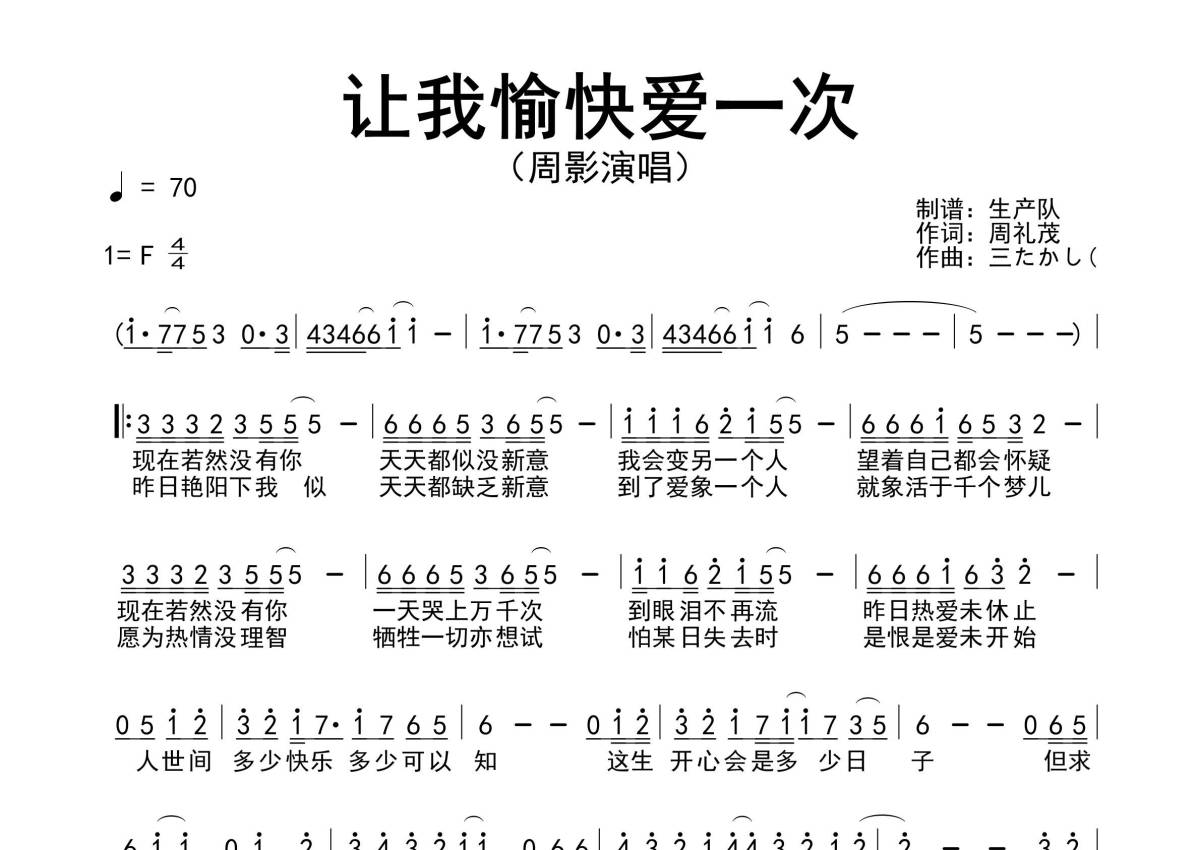 周影《让我愉快爱一次》简谱