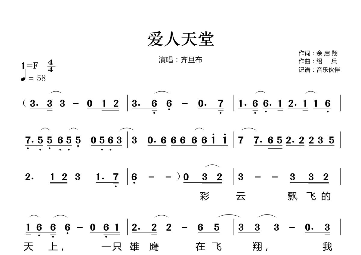 爱人天堂简谱 - 齐旦布演唱