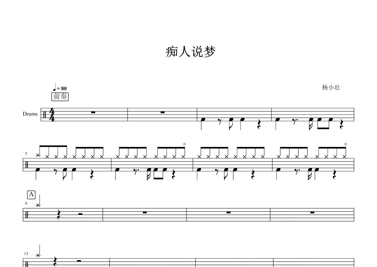 杨小壮《痴人说梦》鼓谱 - 架子鼓谱
