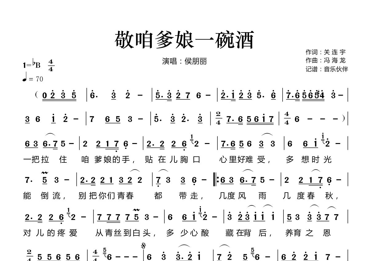 敬咱爹娘一碗酒简谱 - 侯朋丽演唱