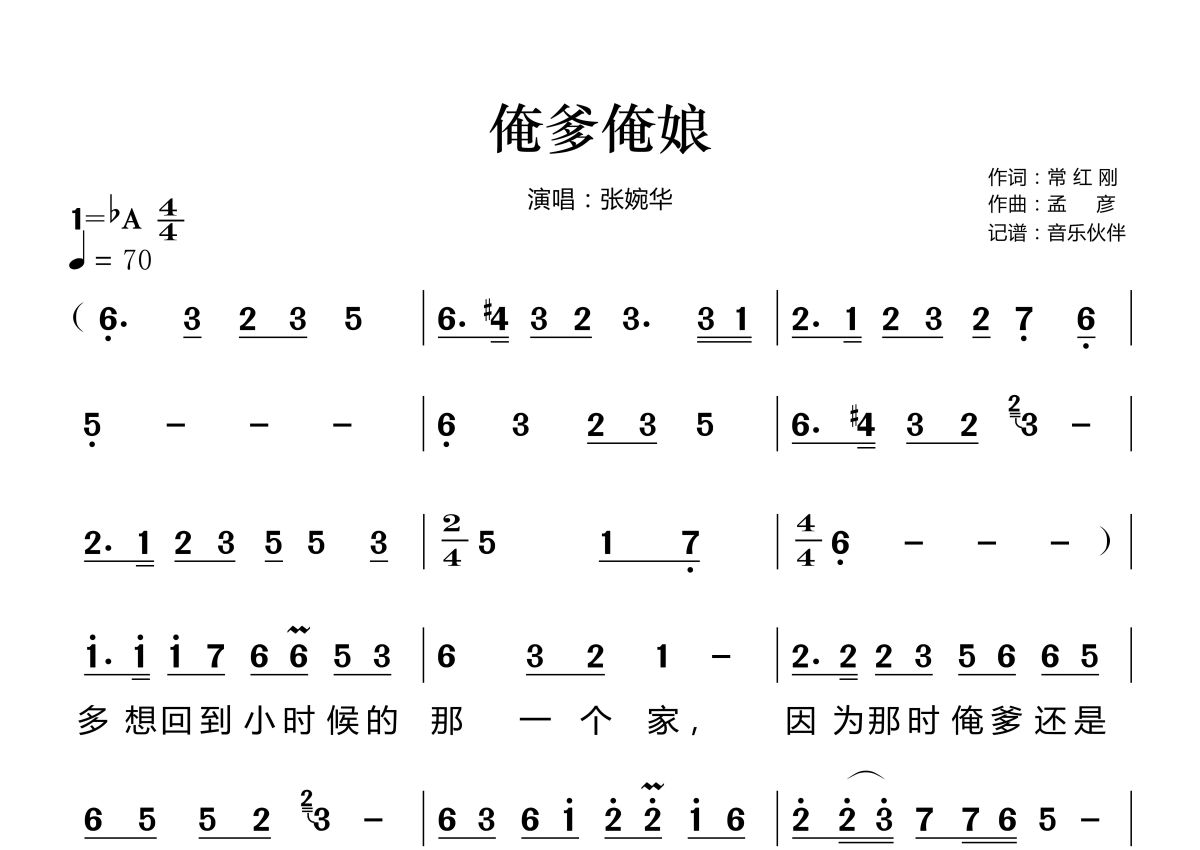 《俺爹俺娘》是张婉华演唱的一首歌曲,这份简谱共有两张高清图谱,图谱由 @音乐伙伴 编配上传。