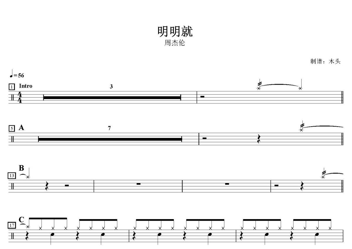 周杰伦《明明就》鼓谱 - 架子鼓谱