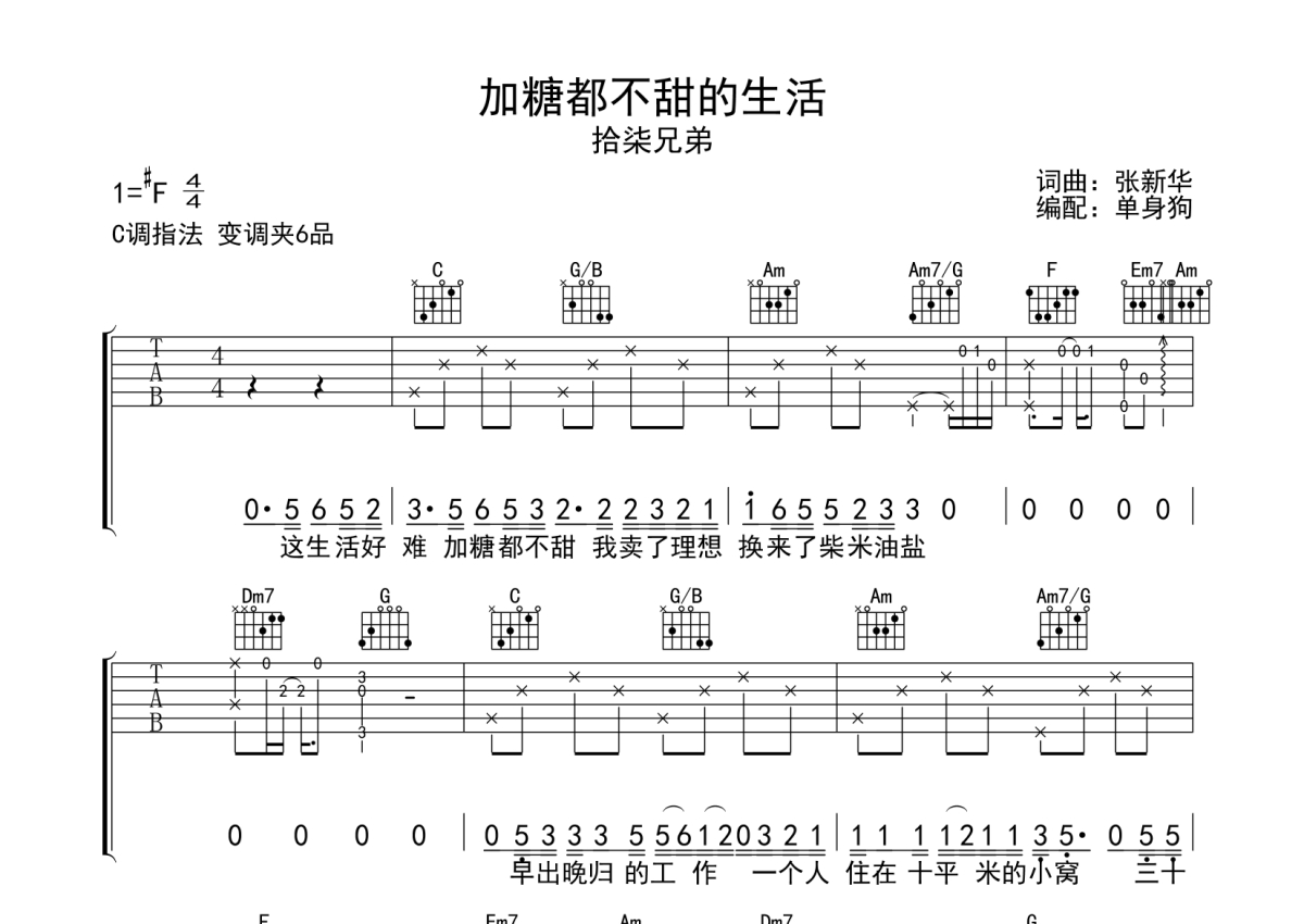 拾柒兄弟《加糖都不甜的生活》吉他谱 - C调弹唱六线谱