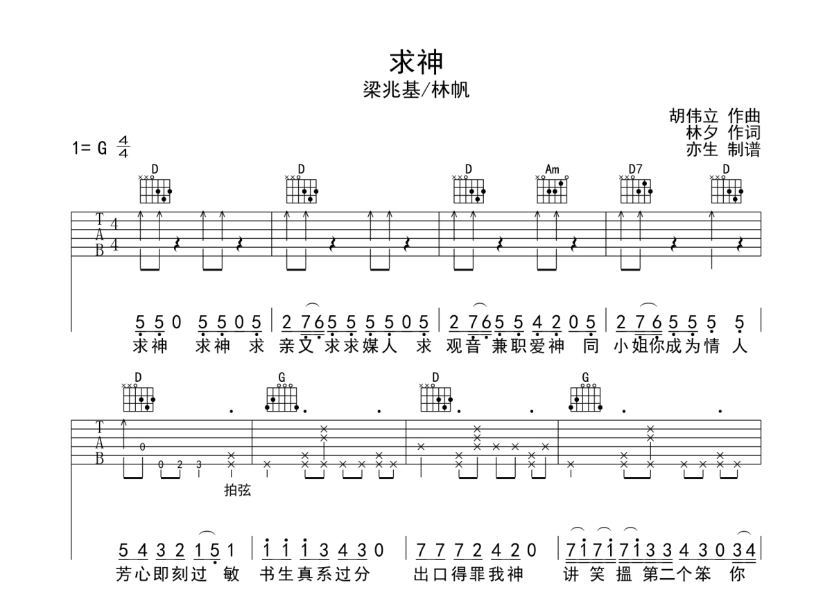 梁兆基/林帆《求神》吉他谱 - G调弹唱六线谱