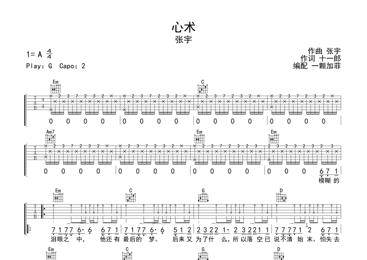 张宇《心术》吉他谱 - G调弹唱六线谱