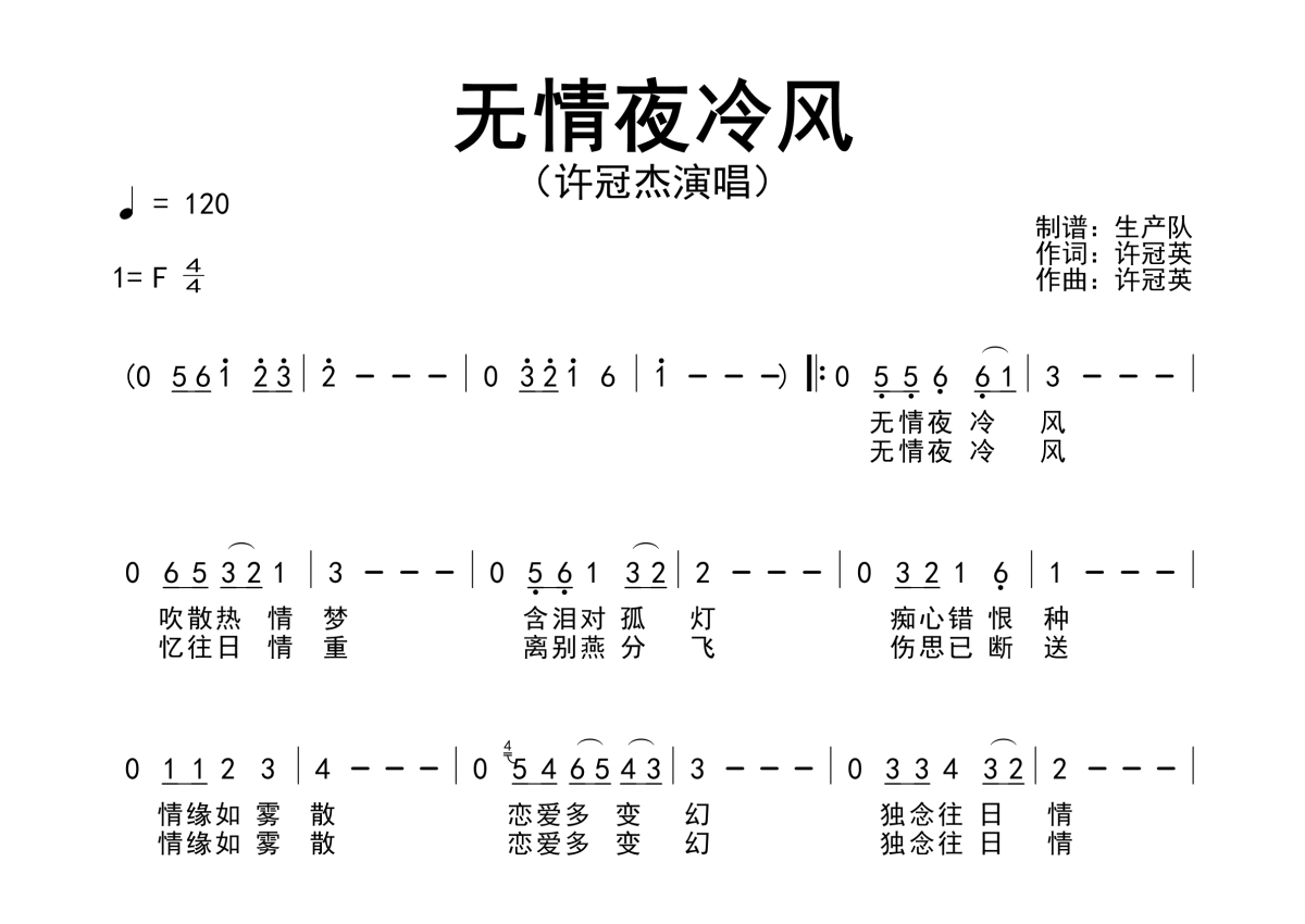 许冠杰《无情夜冷风》简谱 - 原版简谱