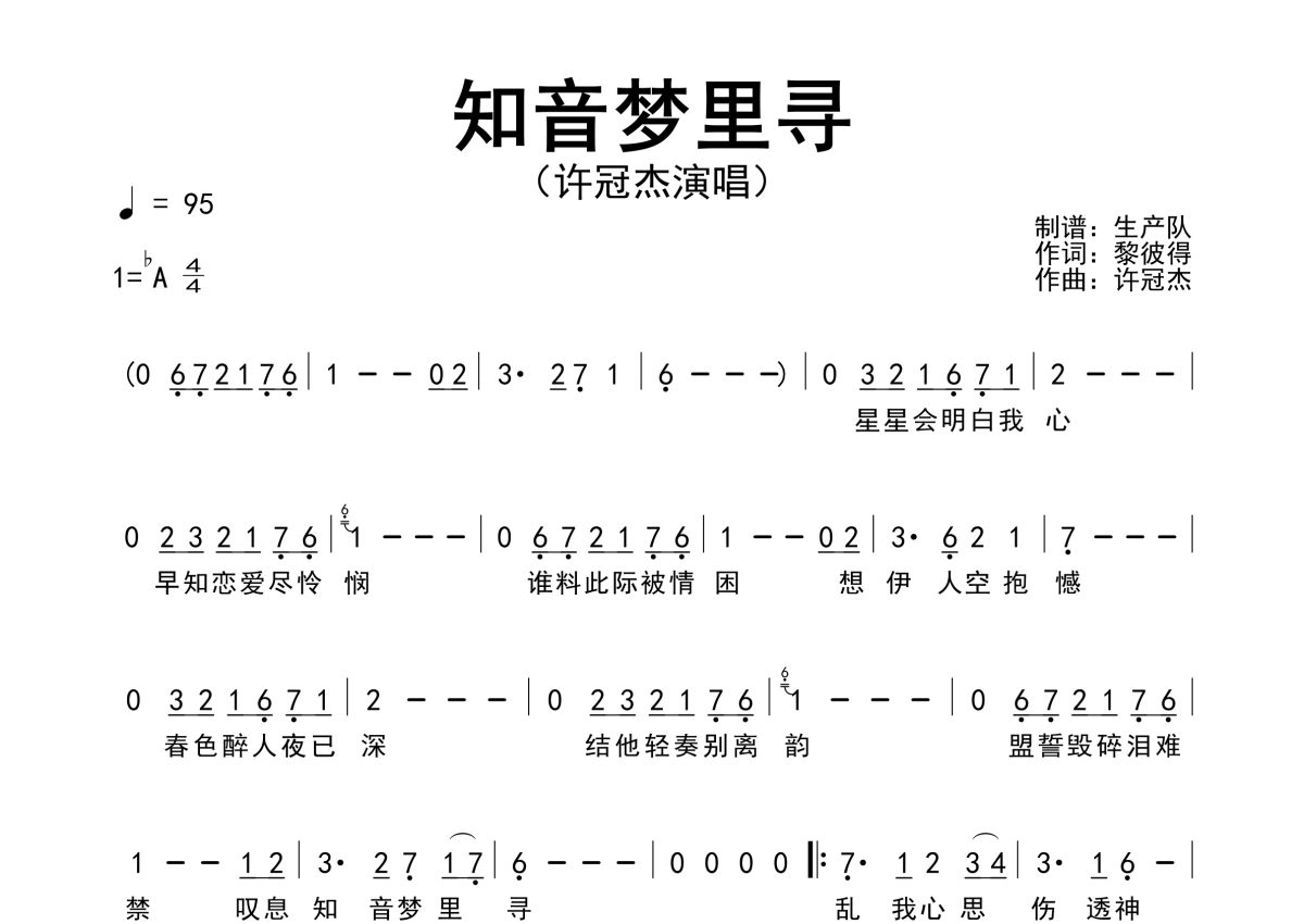 许冠杰《知音梦里寻》简谱 - 原版简谱