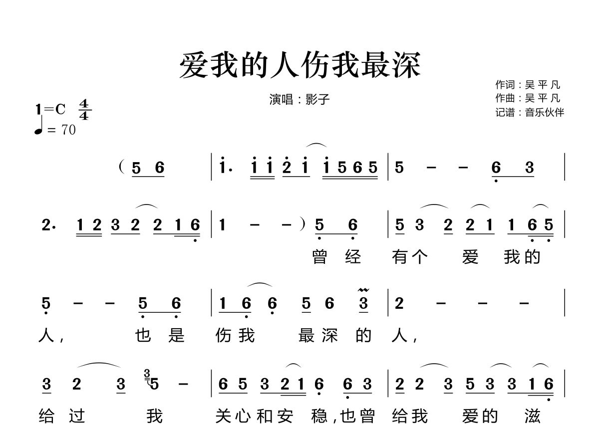 《爱我的人伤我最深》是影子演唱的一首歌曲,这份简谱共有两张高清图谱,图谱由 @音乐伙伴 编配上传。