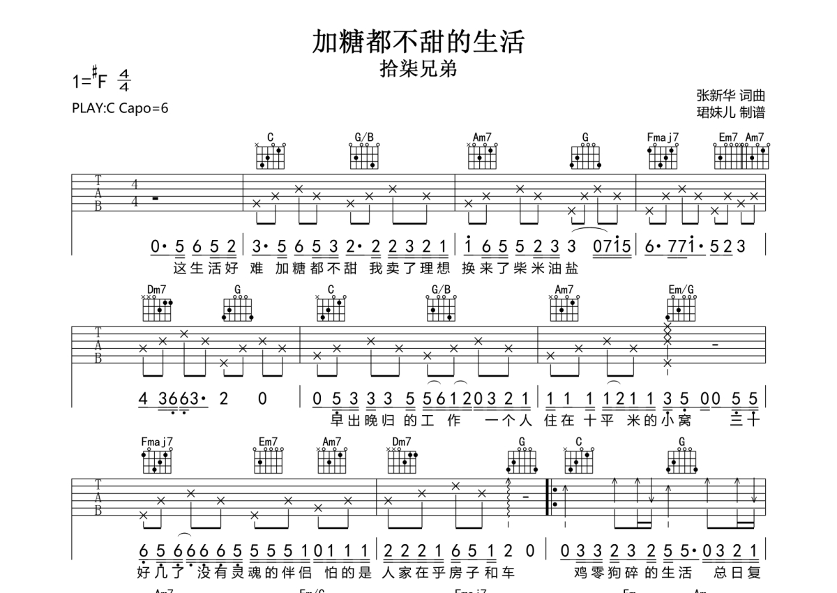 加糖都不甜的生活吉他谱 - 拾柒兄弟 - C调弹唱六线谱