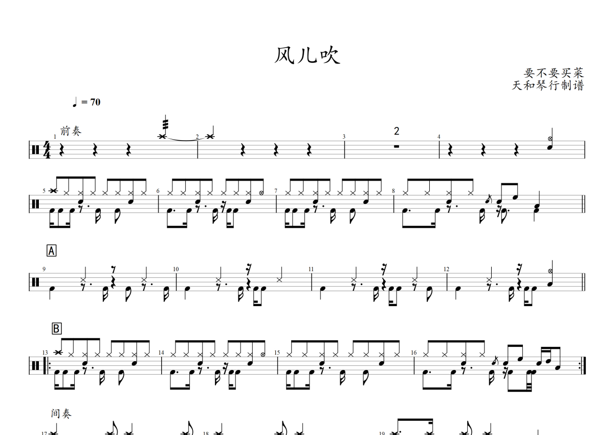要不要买菜《风儿吹》架子鼓谱