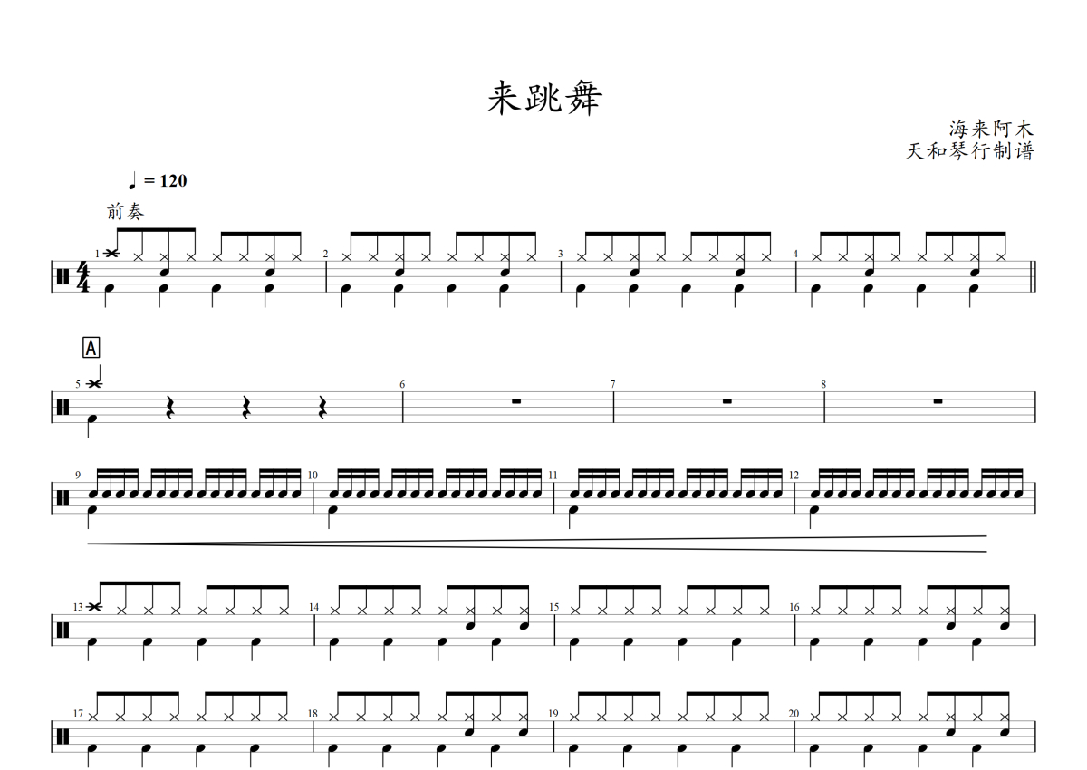 海来阿木《来跳舞》架子鼓谱
