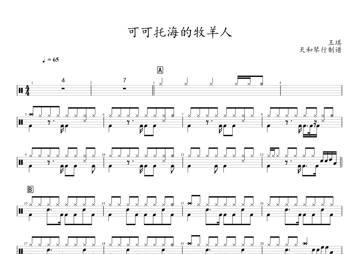 王琪《可可托海的牧羊人》架子鼓谱