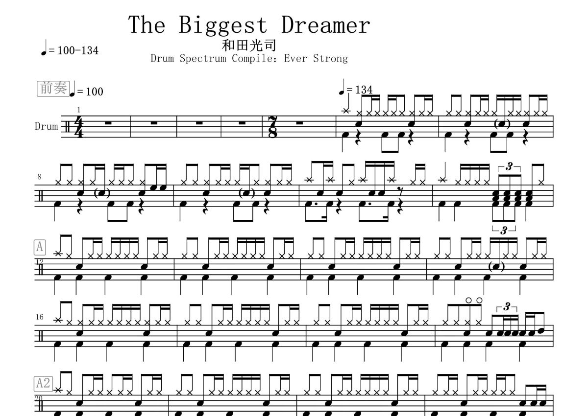 《The Biggest Dreamer》是和田光司演唱的一首歌曲,这份鼓谱共有三张高清图谱,图谱由 @打鼓谱 编配上传,图谱使用五线谱编配,使用这份The Biggest Dreamer架子鼓谱,你将能够轻松地敲打出这首和田光司的The Biggest Dreamer,快来尝试吧。《The Biggest Dreamer》是《数码宝贝》系列第三部《数码宝贝驯兽师之王》主题曲,由和田光司演唱,发行于2002年03月06日。和田光司(わだ こうじ,Wada Kouji,1974年1月29日—2016年4月3日),日本歌手,出生于日本京都府福知山市。动画《数码宝贝》系列御用歌手,1999年4月23日,因在富士电视台系动画《数码宝贝大冒险》献唱主题曲《Butter-fly》完成了首次亮相而被乐迷所熟知。