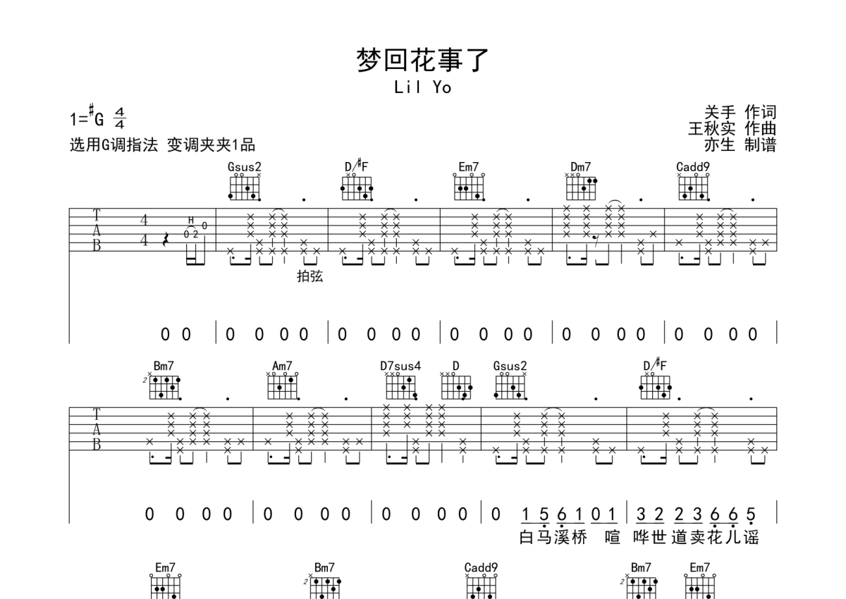 Lil Yo《梦回花事了》吉他谱 - G调弹唱六线谱