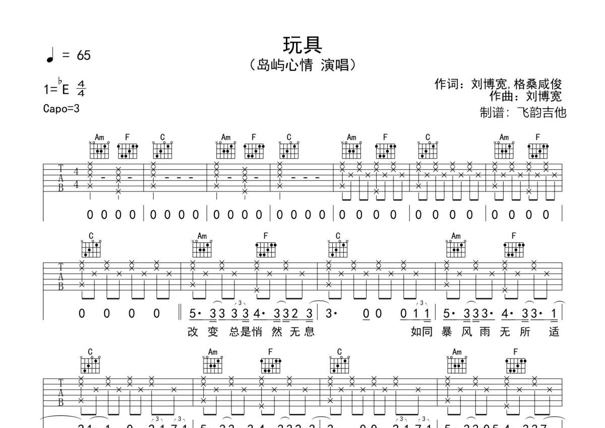 岛屿心情《玩具》吉他谱 - C调弹唱六线谱