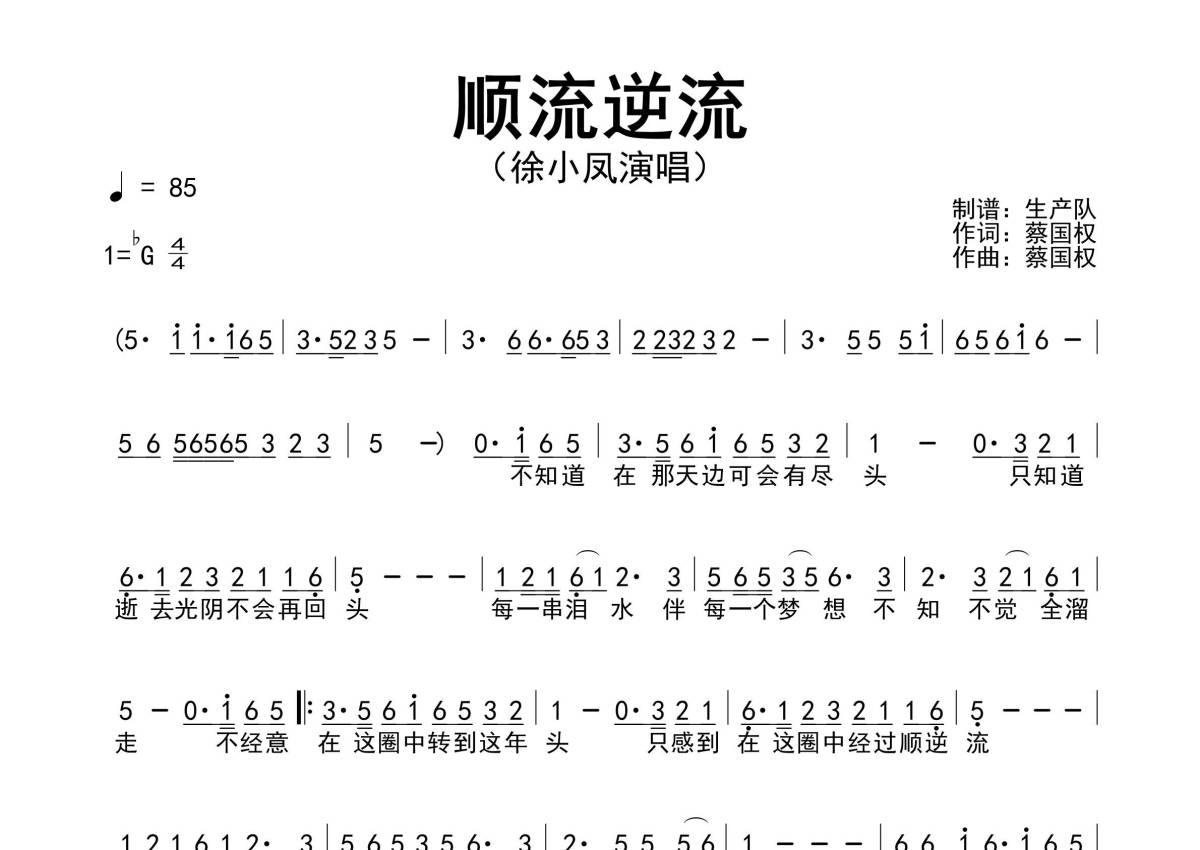徐小凤《顺流逆流》简谱 - 原版简谱