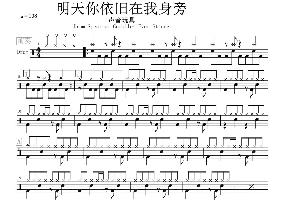 声音玩具《明天你依旧在我身旁》鼓谱 - 架子鼓谱