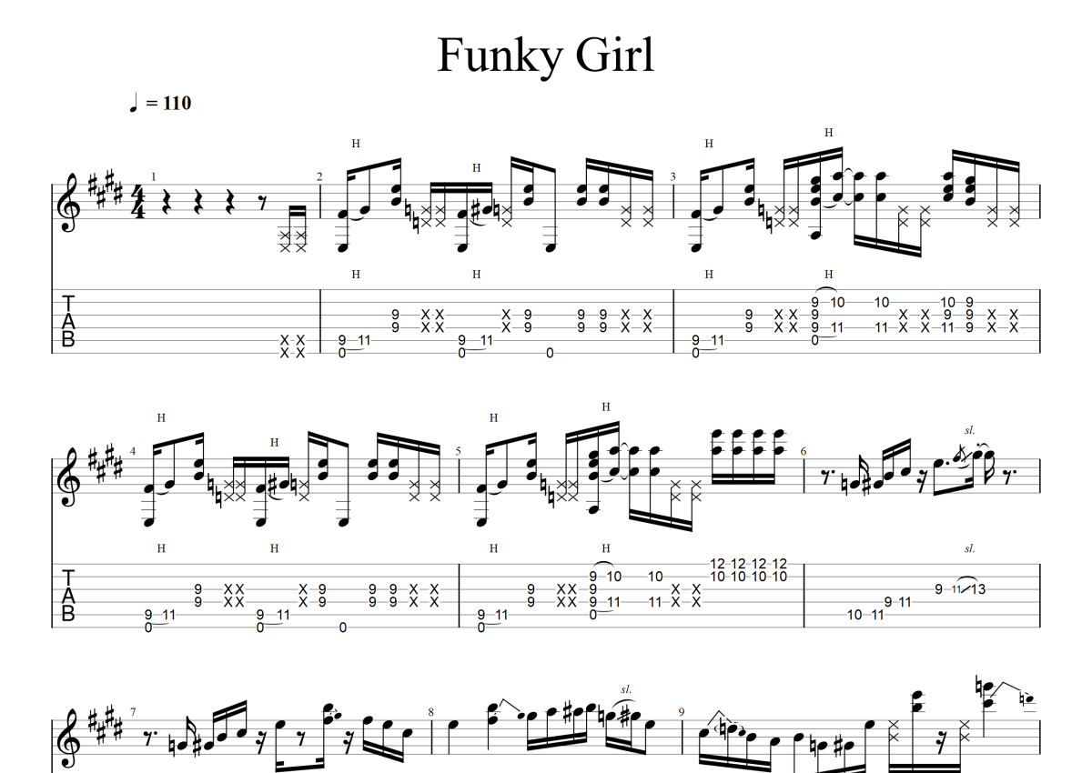 su《Funky girl》电吉他谱