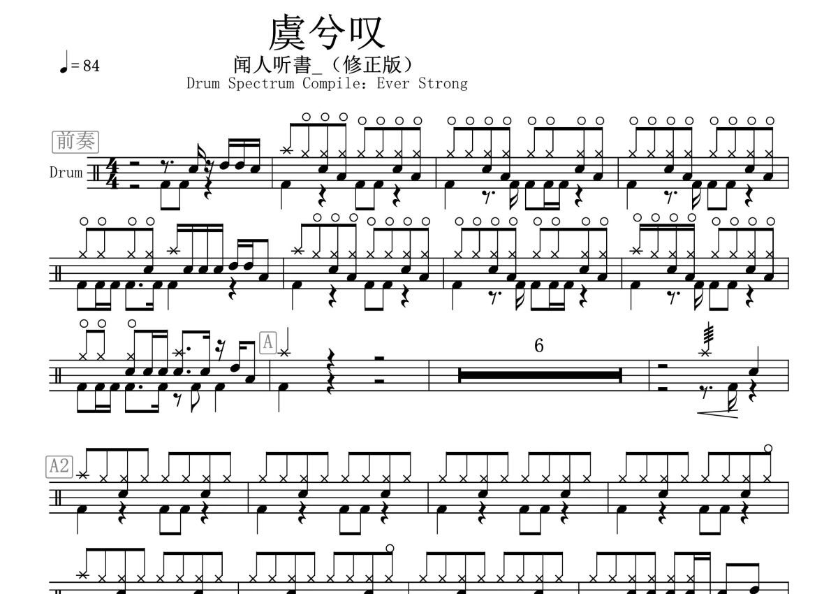 闻人听書《虞兮叹》鼓谱 - 架子鼓谱