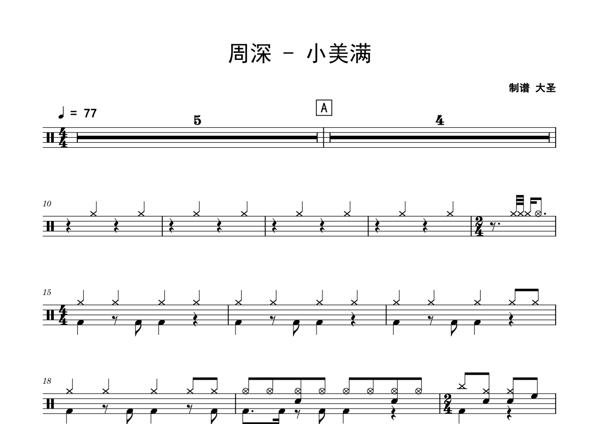 小美满架子鼓谱 - 周深