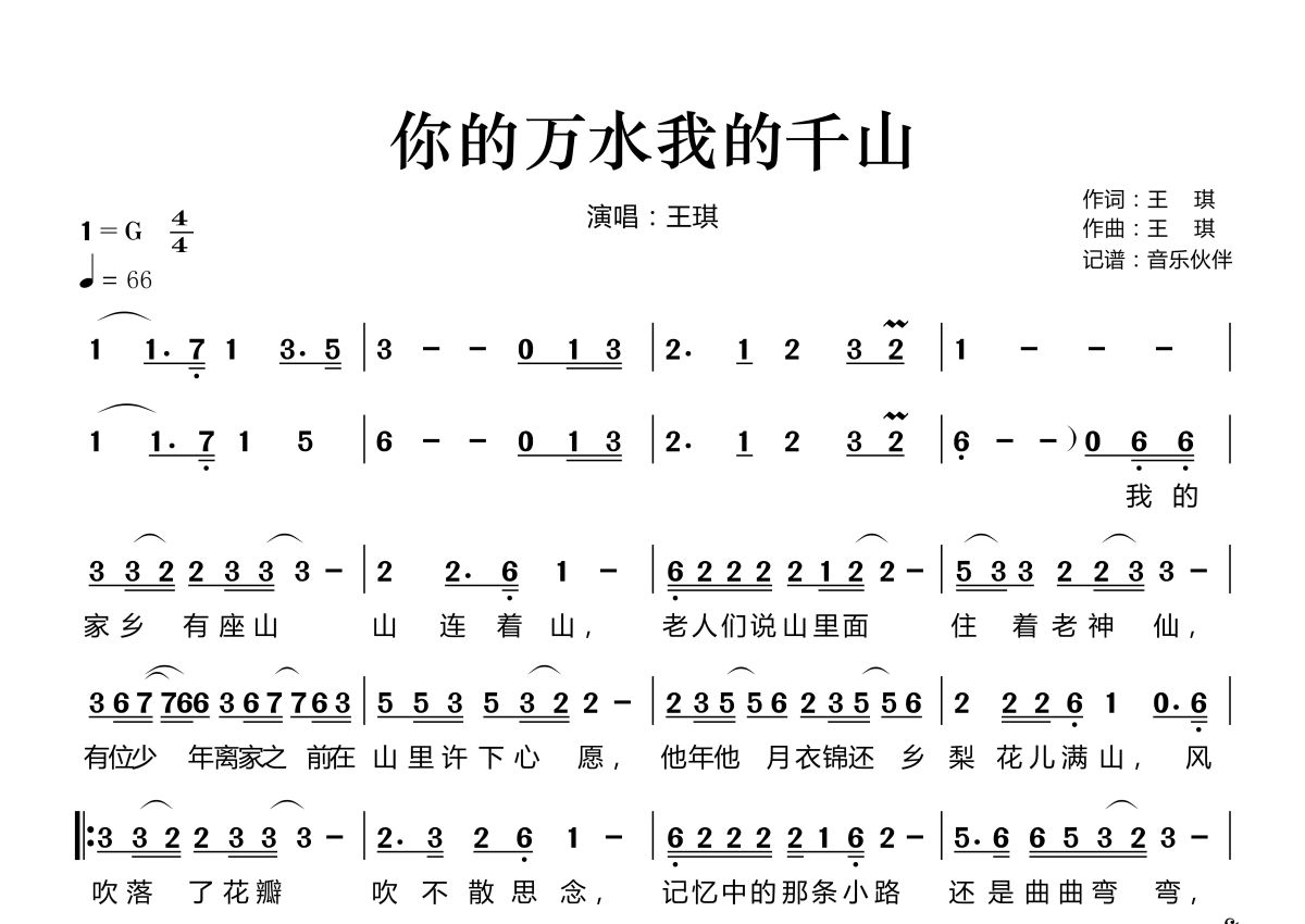 《你的万水我的千山》是王琪演唱的一首歌曲,这份简谱共有一张高清图谱,图谱由 @音乐伙伴 编配上传。