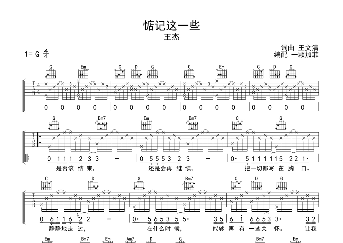 惦记这一些吉他谱 - 王杰 - G调弹唱六线谱
