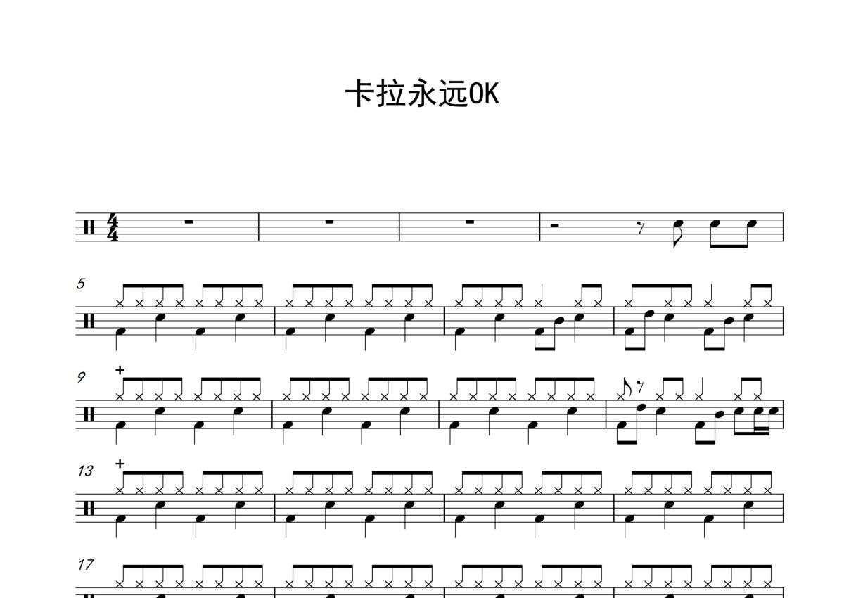 《卡拉永远OK》是谭咏麟演唱的一首歌曲,这份鼓谱共有三张高清图谱,图谱由 @打鼓谱 编配上传,图谱使用五线谱编配,使用这份卡拉永远OK架子鼓谱,你将能够轻松地敲打出这首谭咏麟的卡拉永远OK,快来尝试吧。《卡拉永远ok》是谭咏麟演唱的一首歌曲。由谭咏麟作曲,潘源良作词。收录于谭咏麟1990年发行的专辑《梦幻舞台》中。