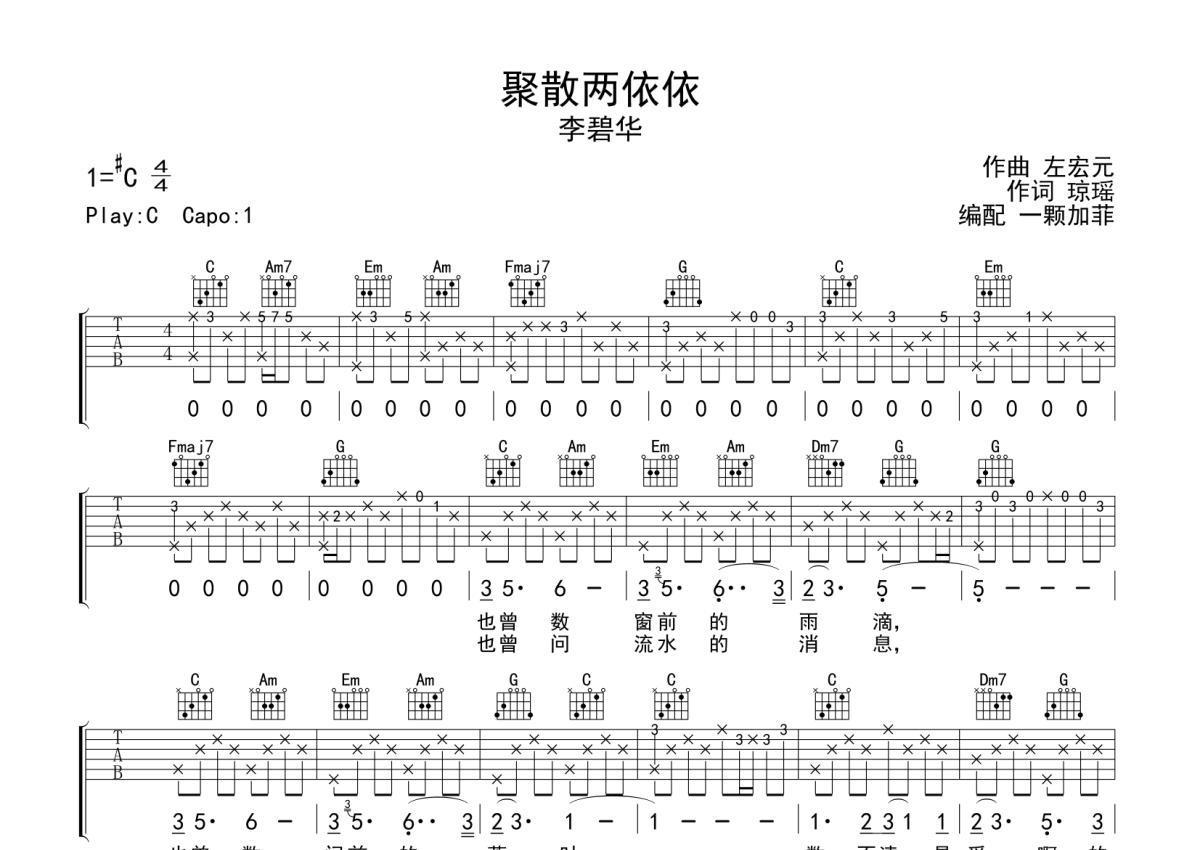 李碧华《聚散两依依》吉他谱 - C调弹唱六线谱
