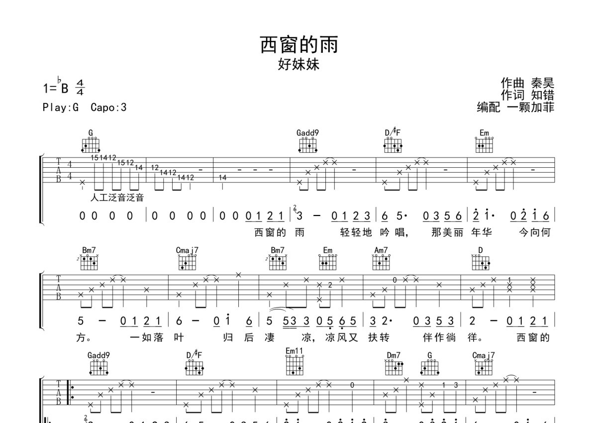 好妹妹乐队《西窗的雨》吉他谱 - G调弹唱六线谱