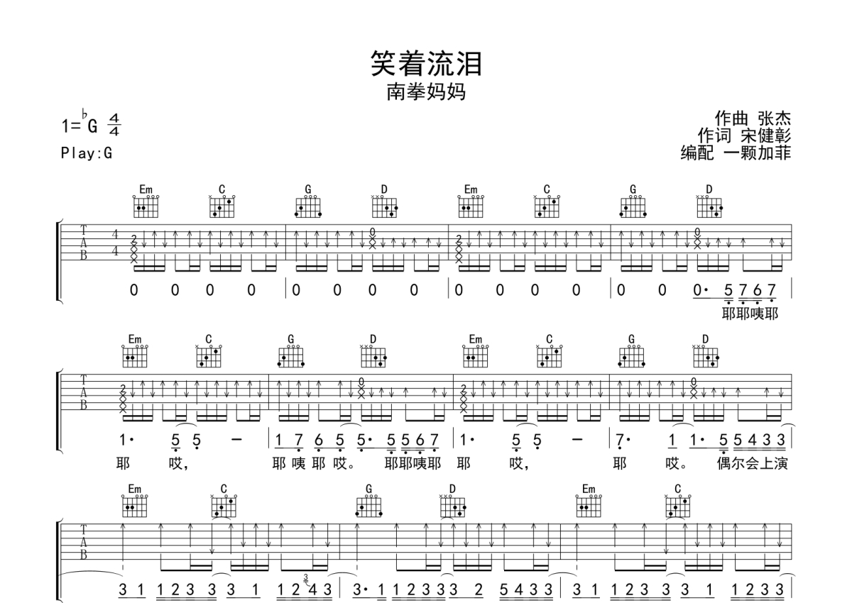 南拳妈妈《笑着流泪》吉他谱 - G调弹唱六线谱