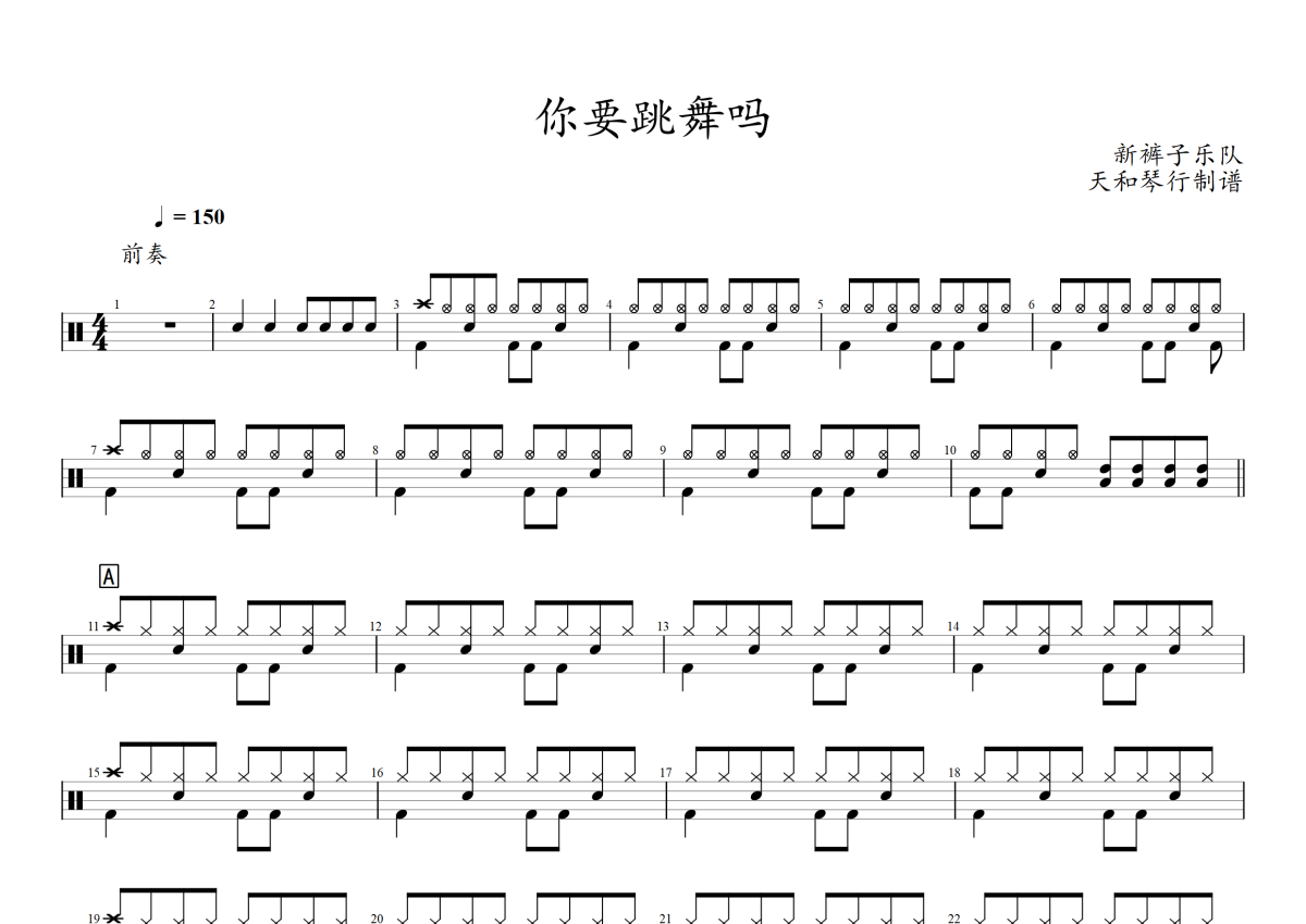 新裤子乐队《你要跳舞吗》架子鼓谱