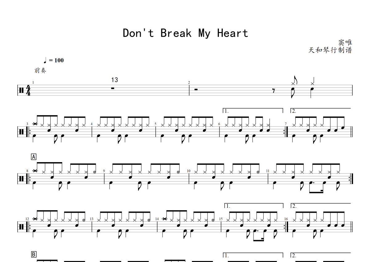 黑豹乐队《Don't Break My Heart》架子鼓谱