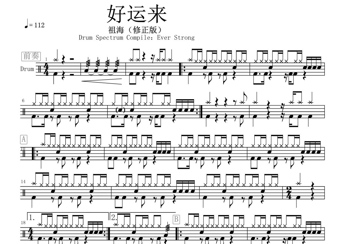 祖海《好运来》鼓谱 - 架子鼓谱