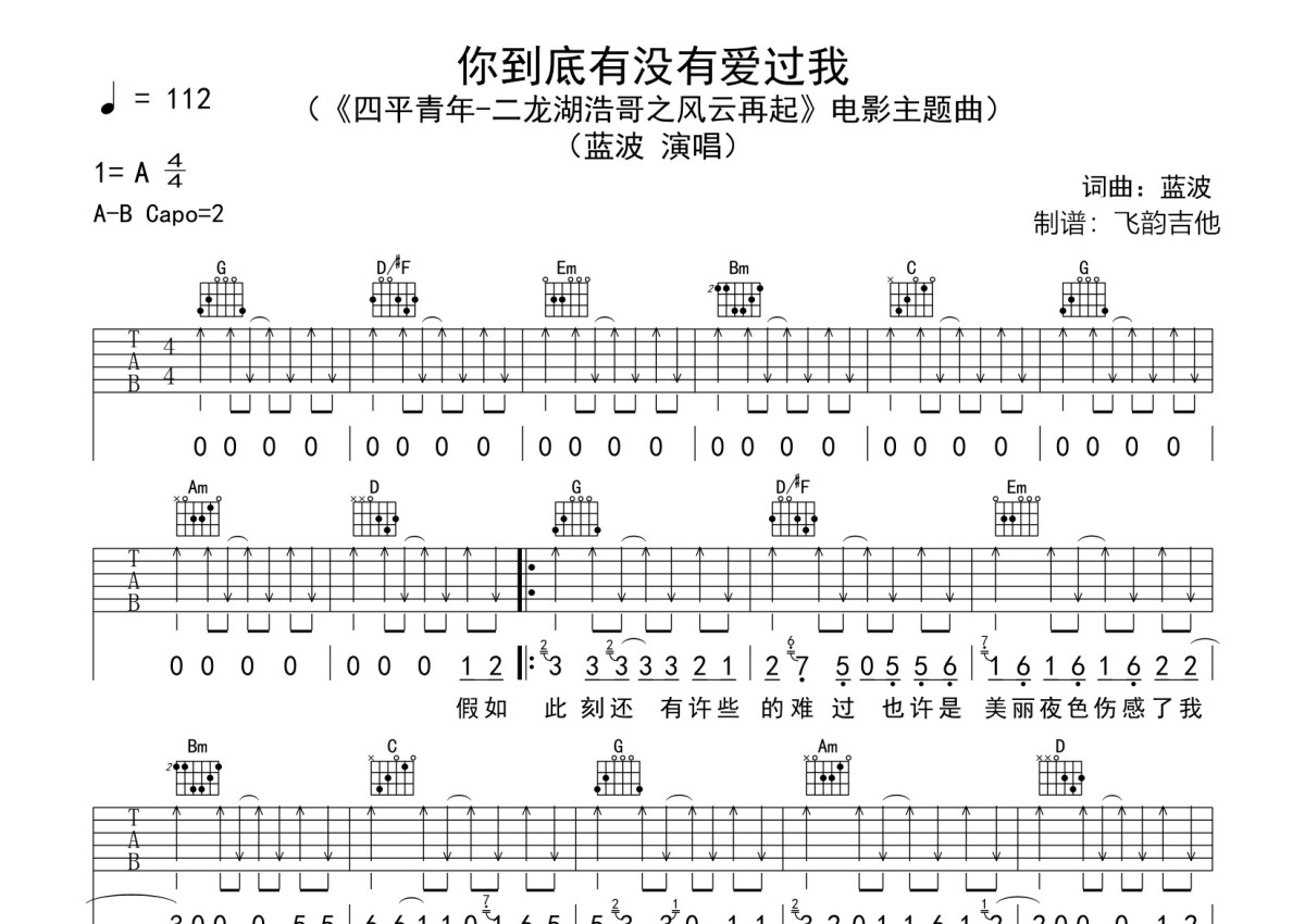 蓝波《你到底有没有爱过我》吉他谱 - G调弹唱六线谱