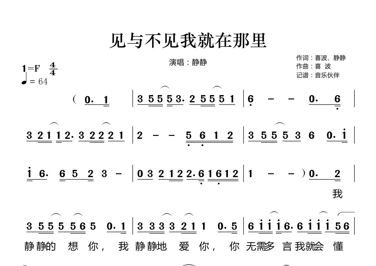 《见与不见我就在那里》是静静演唱的一首歌曲,这份简谱共有两张高清图谱,图谱由 @音乐伙伴 编配上传。