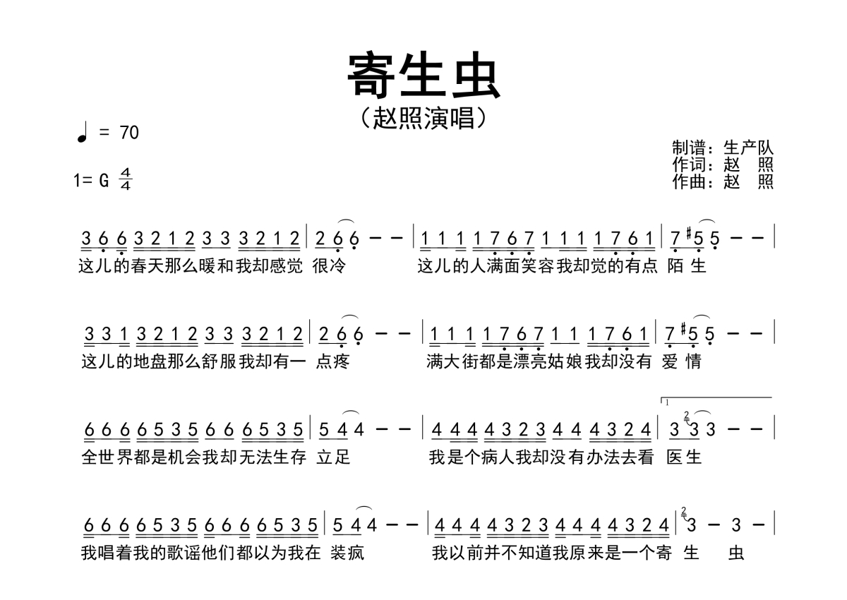 赵照《寄生虫》简谱 - 原版简谱